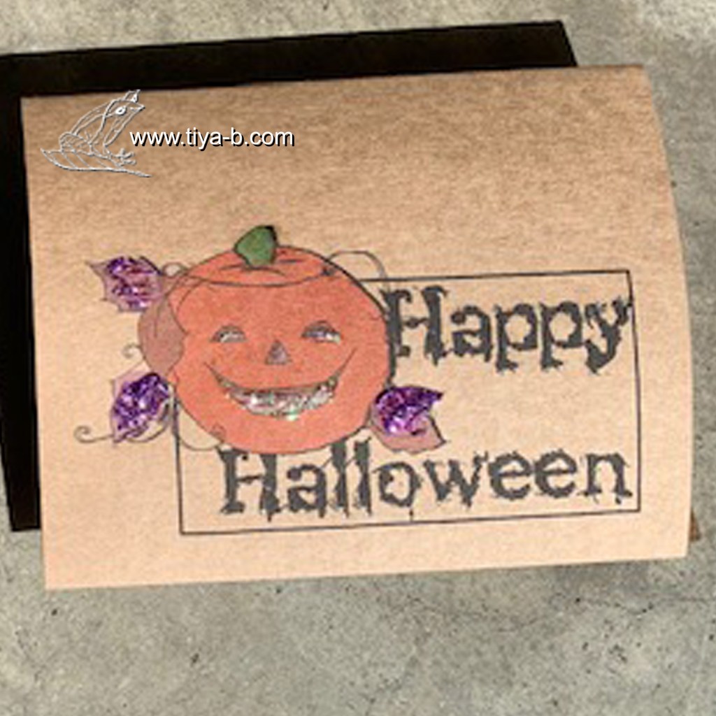 Its October 2nd and I’m already posting a Happy Halloween card. The challenges I’m entering today are the Less is More theme Sparkle and Matte, ‘AAA cards’ One layer & Autumn, and since its autumn, it was stamped on Kraft paper. I used the Sketch Saturday sketch, and colors from Color Throwdown . the image is from A day for daisies. on the photo it has a little too much sparkle( glitter), but by itself it looks better.
