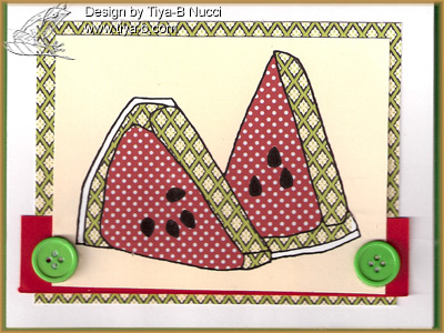 Watermelons again?… yes and since i love them so much the will be appearing quite regularly… this is for Tuesday morning sketches and Simon says stamp lets get fruity. paper pieced in elements and glued on a card and two buttons.