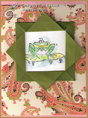 The penny black theme is folds and I love making these frame boxes and they need folds so here’s another framed frog… This one a penny black! The card background is from a dcwv box set.