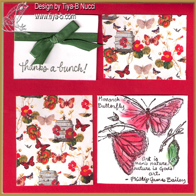 Its monday and I’m home sick and its evening so I tried to make a Mojo Monday card . The butterfly background is from dcwv. the butterfly stamp Stampin’ up, chalked for color.. added a bow and here it is.