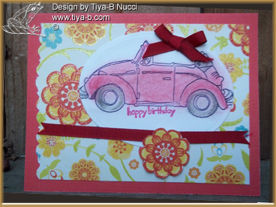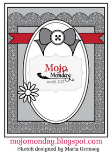 its a day late i know and it looks kind of 60’s love bugish but some how this is what came out of Mojo Monday sketch. the st5amp is from printworks and the background a dtwv stack. the oval cut with spellbinders.