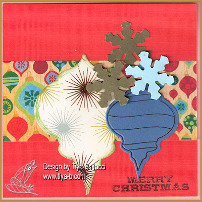 it Monday… so here’s the Mojo Monday. The Christmas ornaments cut with spellbinder.. the ornament stamp is from sparkle n sparkle , the sentiment stampin up and the snowflake Marvy. the background paper, the ornament paper and the card are dcwv. sketch below. Top tip Tuesday has anything goes so I’ve liked this there too!