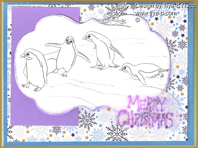 Let it show(but please stop the rain!) , just kidding about the snow but I’m tired of two weeks of rain!.. the Everybody art challenge was first snow, and penny black all sorts was anything goes, so here’s a card for my sister in Colorado, since penguins would be perfect. The penguins are from digi doodles.. the background dcwv…