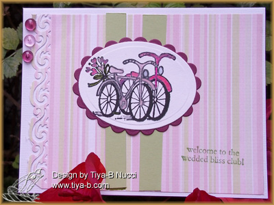 I will be attending a wedding today, and i love this penny Black bike stamp and was able to use it in the penny black Staurday challenge. the sentiment is Stampin up, the ovals were of course cut with spellbinders.The left edge is done using EK success punch.