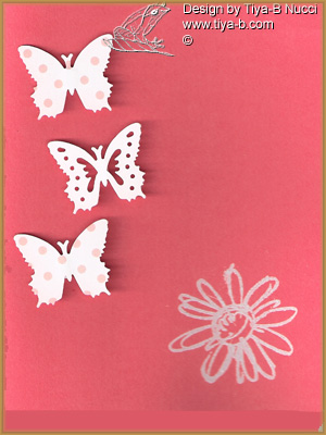 Did I say I love polka dots? The prevous Halloween cat wasn’t enough so here’s dots in butterflies. they are punched from the same EK punch it has 3 but i only used two types here. The flower is embossed from a Sampin’up set.