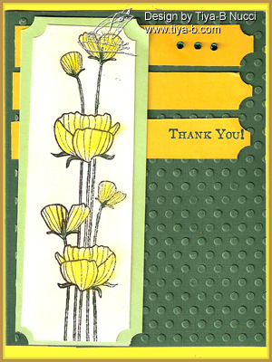 Yea, I was chosen Top 3 winner at Crafts for Eternity last week yea again love it!.and here is this week’s entry. The image is from hero arts and the background dots were cuttleguged, I then added the yellow strips, dots and thank you.