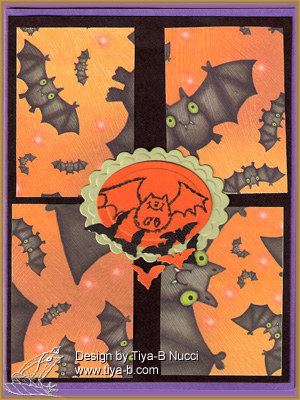 its the Saturday before Halloween and here’s my batty card for the penny black sketch below. the paper is kc & co and the stamp is penny black and the cut bats are from Martha Stewart.