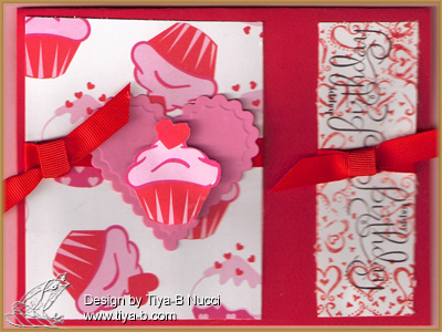 What could be better for a Valentine birthday than cupcakes??? The MyTimeToCraft challenge is bring on the cake , and this sketch from Tuesday morning sketches. The paper is kc & co, the sentiments is from Stampin up and the pink backgrounde heart cut with spellbinders. HAPPY BIRTHDAY MICHELE
