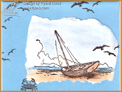 Today’s Less is more is aqua so i put this boat on aqua paper… the stamps(boat and birds) are from Local King Rubber Stamp.. the clouds and boat are chalked.