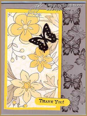 I’ll do the MOJO Monday challenge tonight, however today I’m posting the card I made to thank my Jazzercise instructor for her annual 100 party, if we jazzercise 100 or more times in a year the next year we are invited to0 a garden party burnch. This picture is one from her garden taken at last years party. The sentiments are hero arts, the butterflys Martha stewart punch…