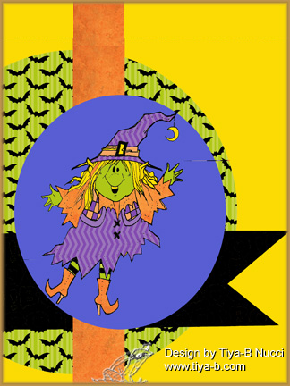 Its Monday- so here’s my Mojo monda y entry today. This weekend I lucked out and found this free digi witch (sorry the freebe is gone but it can be purchased), isn’t she cute ?, but is she scary enough for Party time Tuesday’s frightfully scary projects and cards, maybe. The witch is from Rick St Dennis , and I liked it so much I bought a haunted house digi and will use later. This card is paper pieced in PS elements. The paper is Halloween by Sherri k designs.