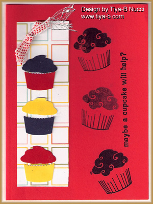 This is for cupcake inspirations… red yellow and blue, see below. the left cupcakes are from a Martha Stewart punch, ones on the right are sentiment Inkadinkado and the cupcakes Stampendous..have a yummy Sunday.