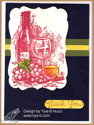 I was asked to make a thank you for wine etc…the challenge is CASE study, the wine stamp is Inkadinkado the thanks is Stampendous, I chalked the leaf, cork, and cheese. the thank you is cut with a stanpin up window punch anthe wine picture cut with a spellbinder nestie.
