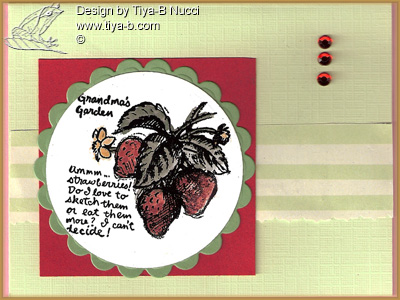 This is for 3 challenges Mojo monday, Case study challenge and The play date cafe. Mojo monday sketch 179 is the design and the other two challenges had black green and red for a color challenge. the stamp set is Stampin’ up colored with twinkling h2os water colors . The circles cut with nesties ad a background stripes and rhinestones..